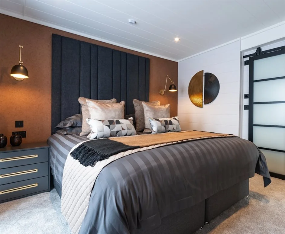 Super king bed with statement headboard