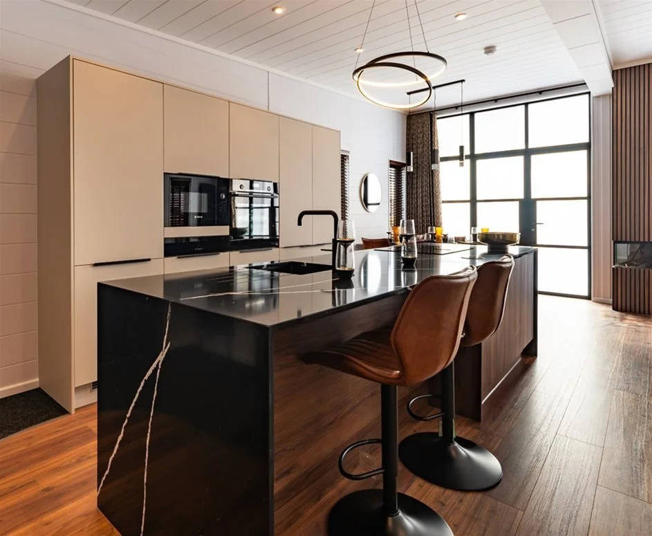 Silestone waterfall island with breakfast bar