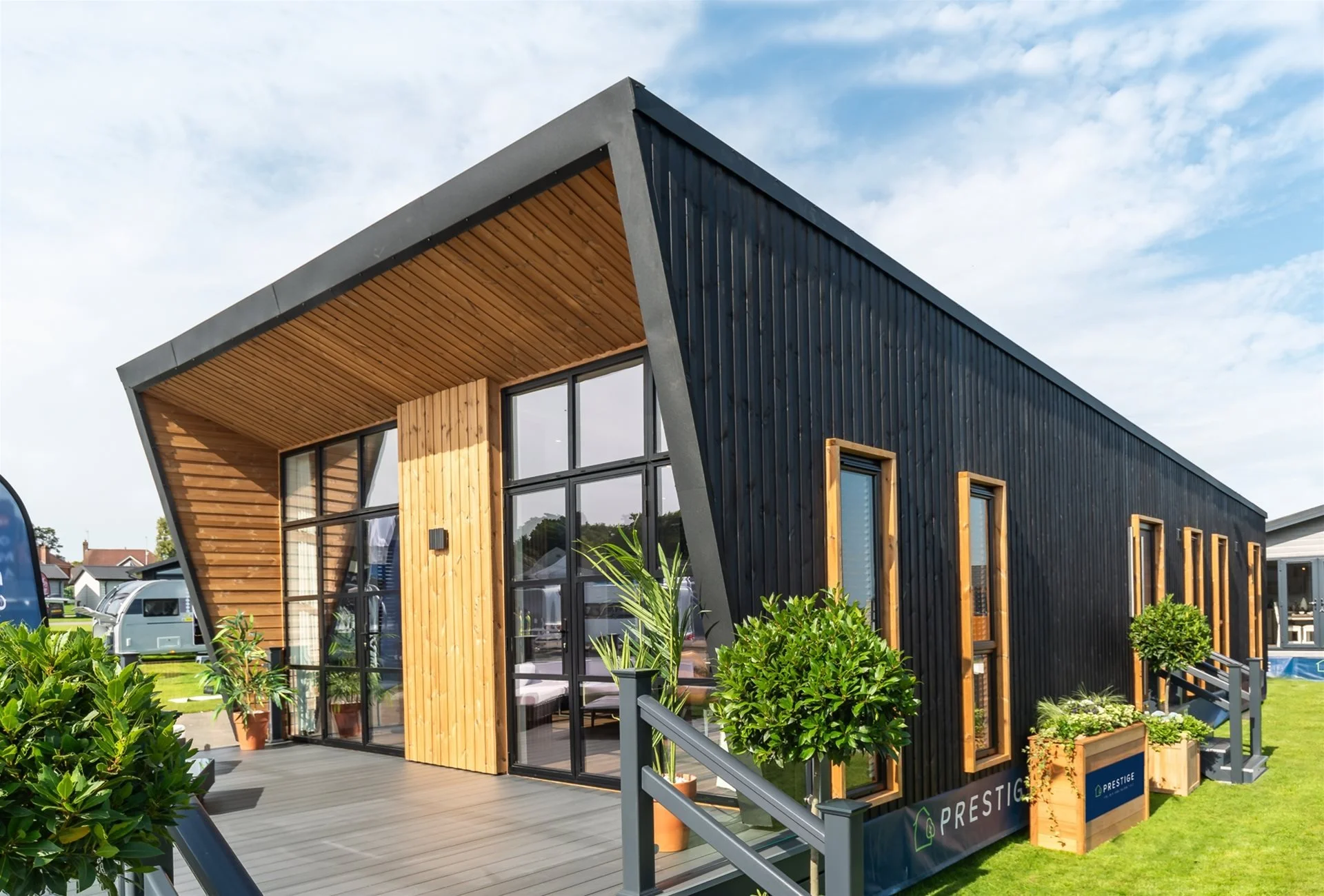 Thermowood feature cladding with matching thermowood feature frames to all external windows and door